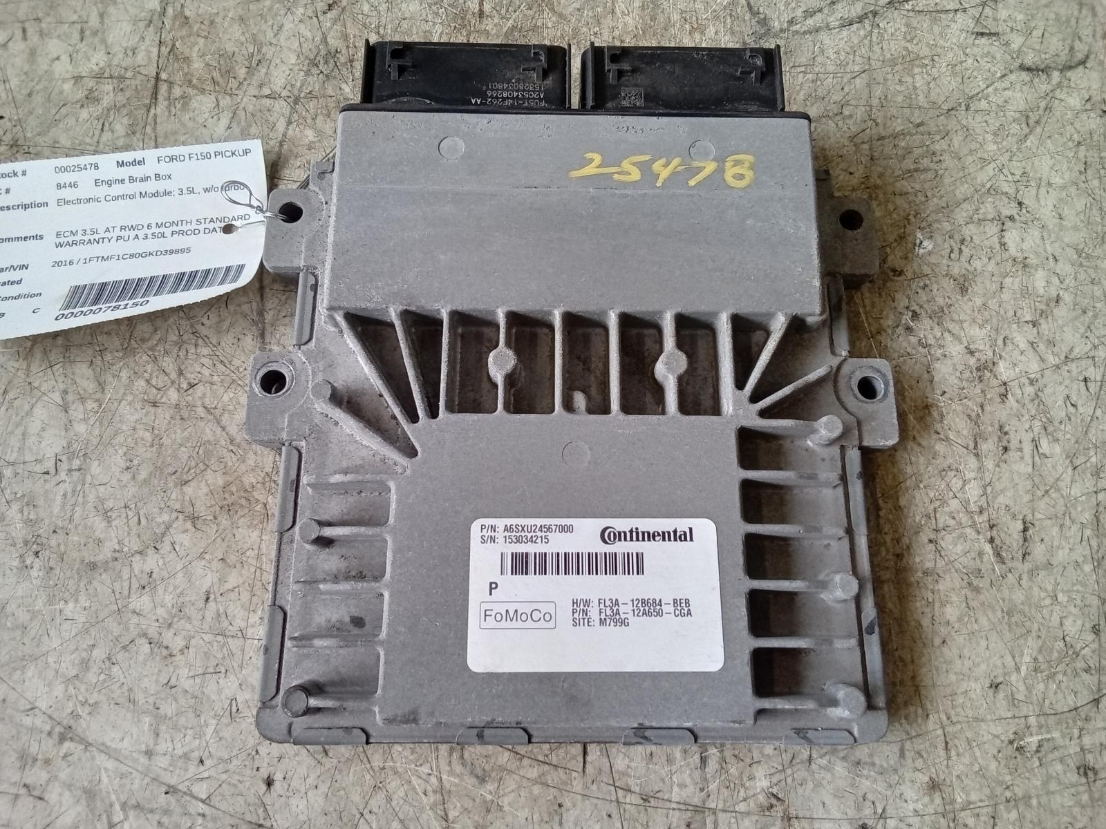 2016 FORD FORD F150 PICKUP 15-17 Electronic Control Module; 3.5L W/o Turbo Engine Control Module