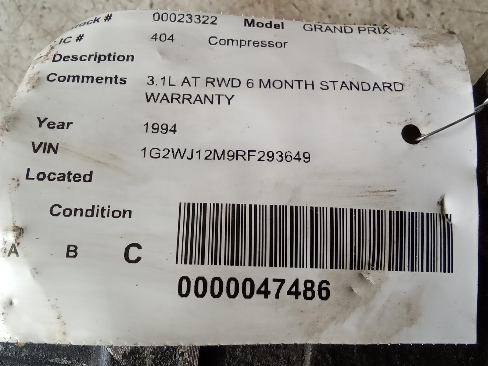 1994 PONTIAC GRAND PRIX Part:682 AC Compressor 3.1L AT RWD 6 MONTH STANDARD WARRANTY 2DR AC 3.10L 96 6-207 (3.4L) W/4 O’clock Mounting Ear 216178