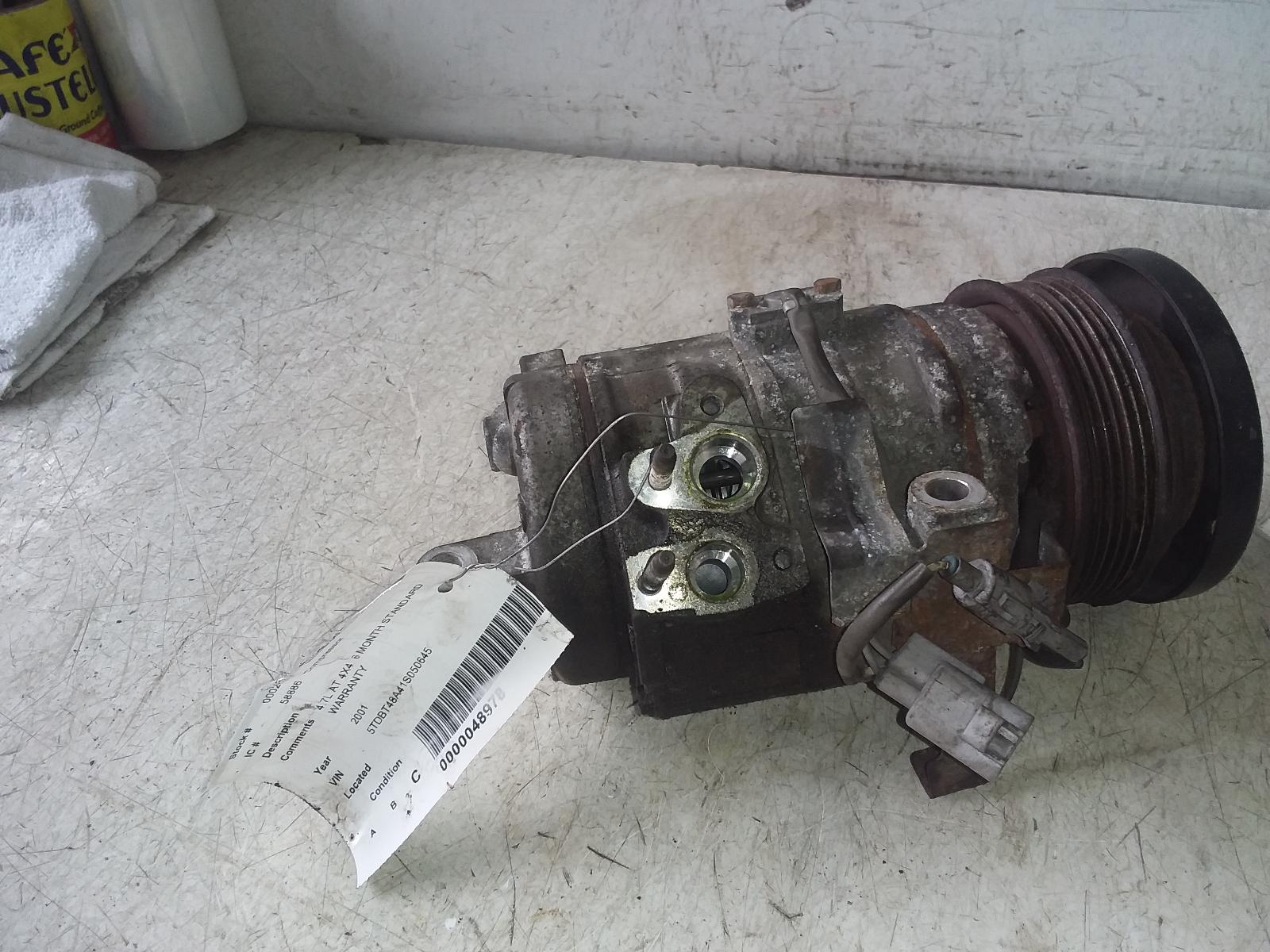 2001 TOYOTA SEQUOIA Part:682 AC Compressor 4.7L AT 4X4 6 MONTH STANDARD WARRANTY 01-07 220920