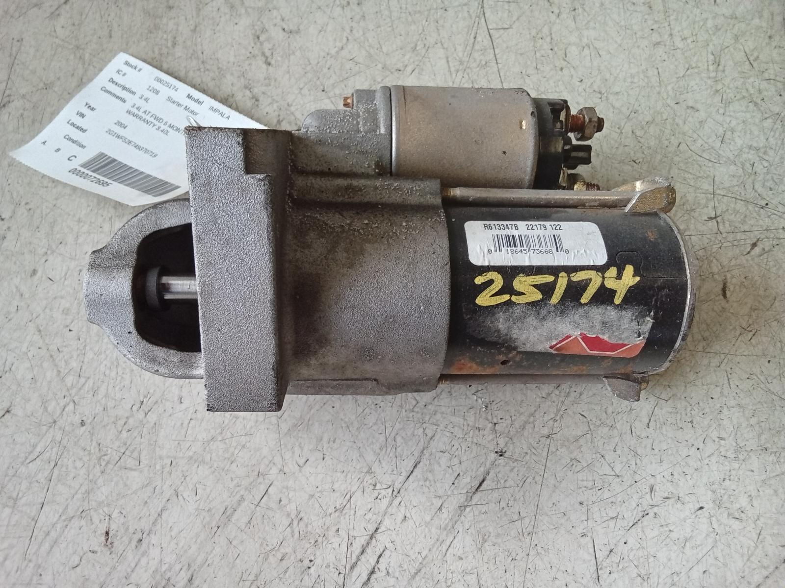 2004 CHEVROLET IMPALA Part:604 Starter Motor 3.4L AT FWD 6 MONTH STANDARD WARRANTY 3.40L 00-05 3.4L 307279
