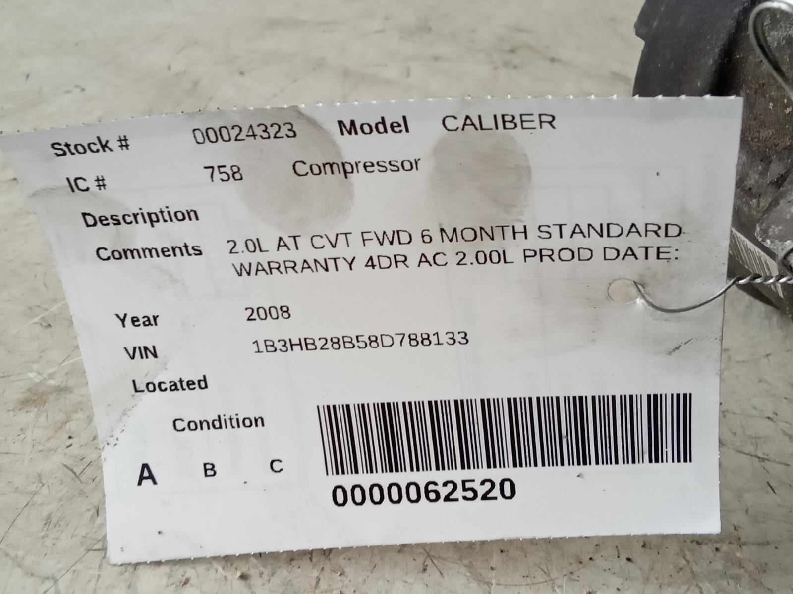 2008 DODGE CALIBER Part:682 AC Compressor 2.0L AT CVT FWD 6 MONTH STANDARD WARRANTY 4DR AC 2 07-08 270257