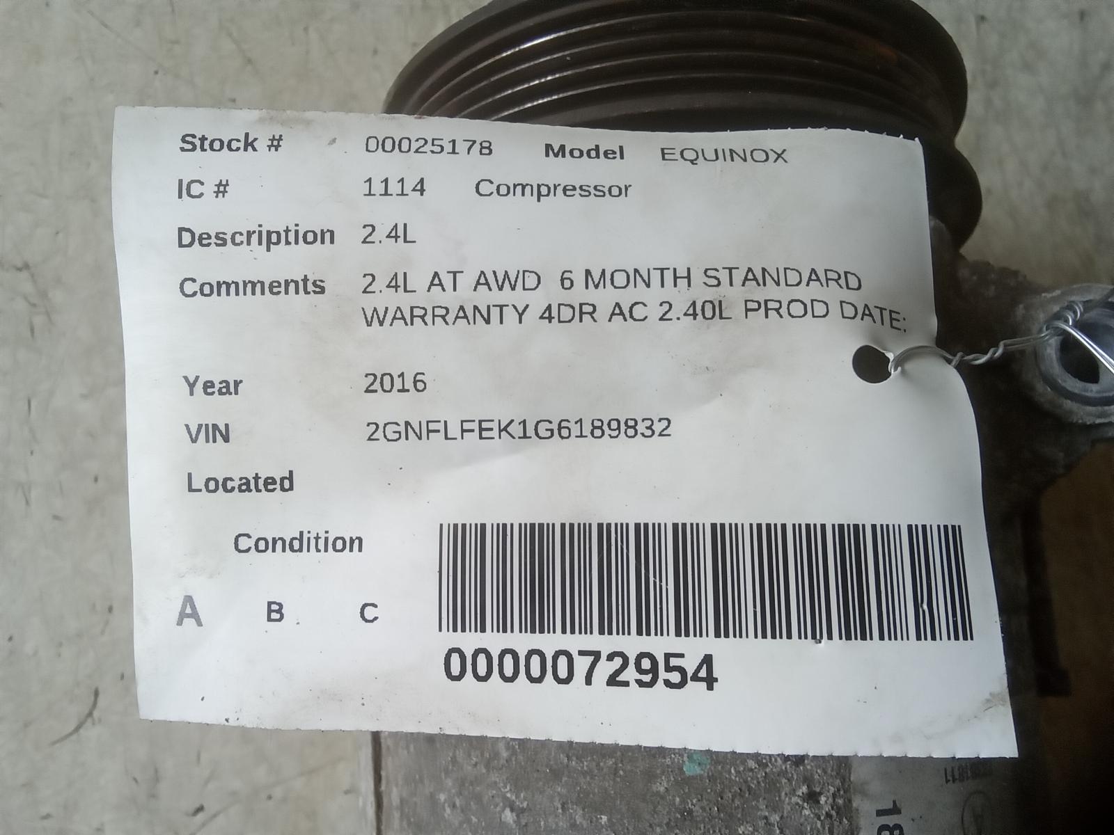 2016 CHEVROLET EQUINOX Part:682 AC Compressor 2.4L AT AWD 6 MONTH STANDARD WARRANTY 4DR AC 2.40 16-17 2.4L 307829