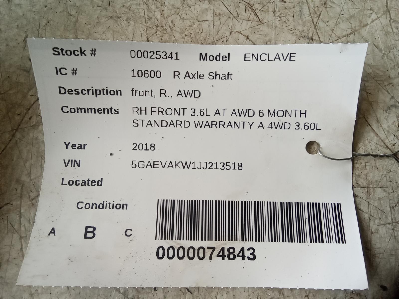 2018 BUICK ENCLAVE Part:447 Axle Shaft RH FRONT 3.6L AT AWD 6 MONTH STANDARD WARRANTY A 4 18-20 Front R. AWD 314297