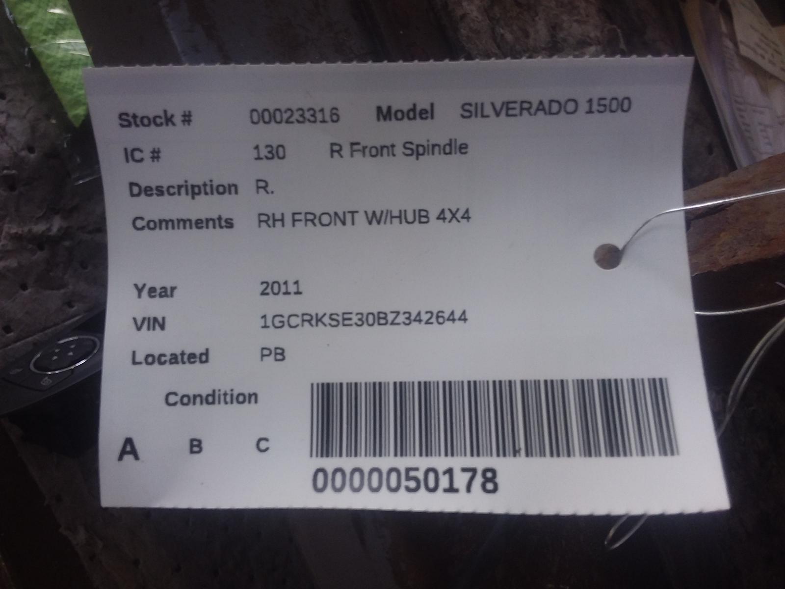 CHEVROLET SILVERADO 1500 PICKUP 2008 2009 2010 2011 2012 2013 R. Part:515 Spindle Knuckle Front RH FRONT W/HUB 4X4