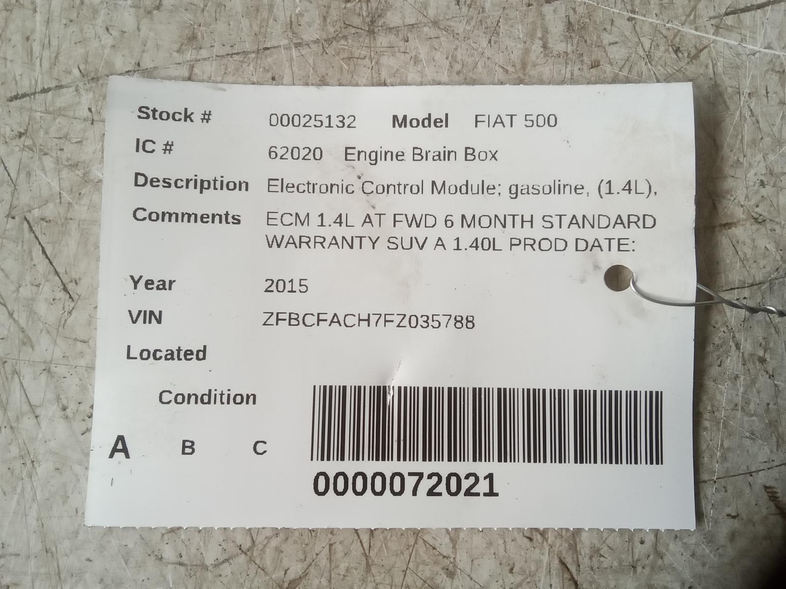 FIAT FIAT 500 2014 2015 Electronic Control Module; Gasoline, (1.4L), VIN H (8th Digit, Turbo), 4 Dr, AT Part:590 Engine Control Module ECM 1.4L AT FWD 6 MONTH STANDARD WARRANTY SUV A 1.
