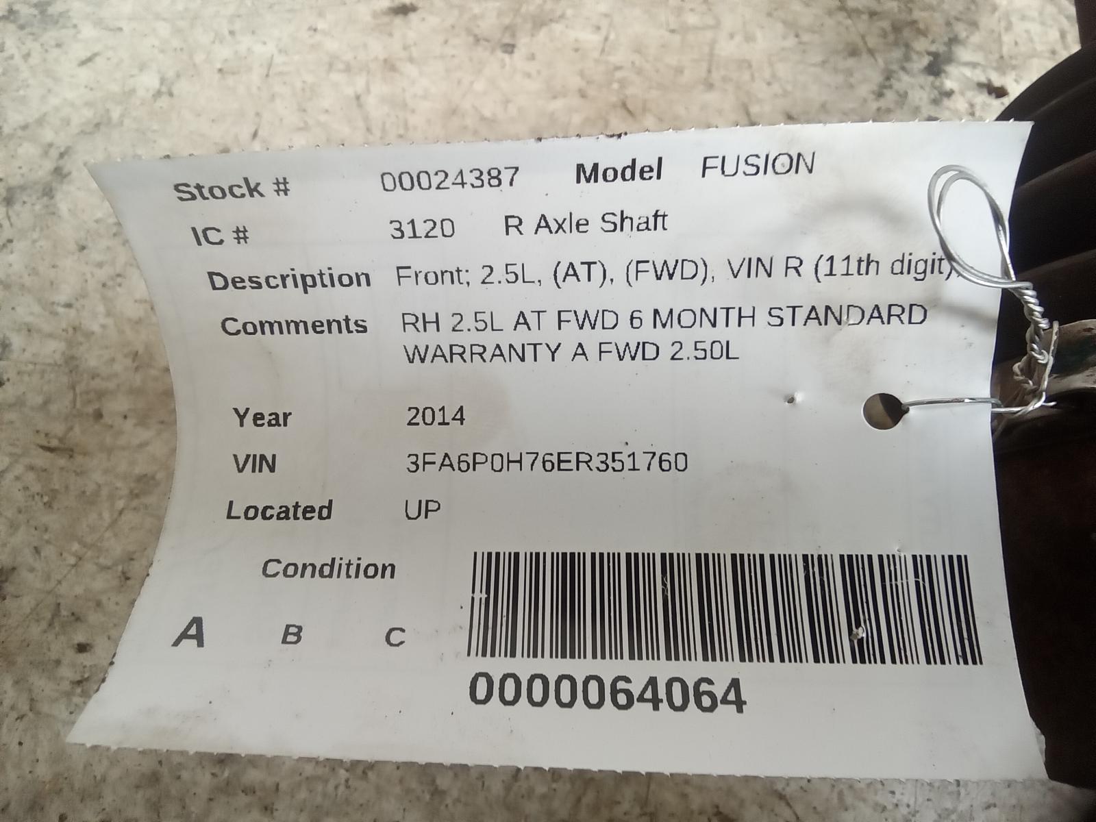 FORD FUSION 13 Front, 2.5L, (AT), (FWD), R. Part:447 Axle Shaft RH 2.5L AT FWD 6 MONTH STANDARD WARRANTY A FWD 2.5
