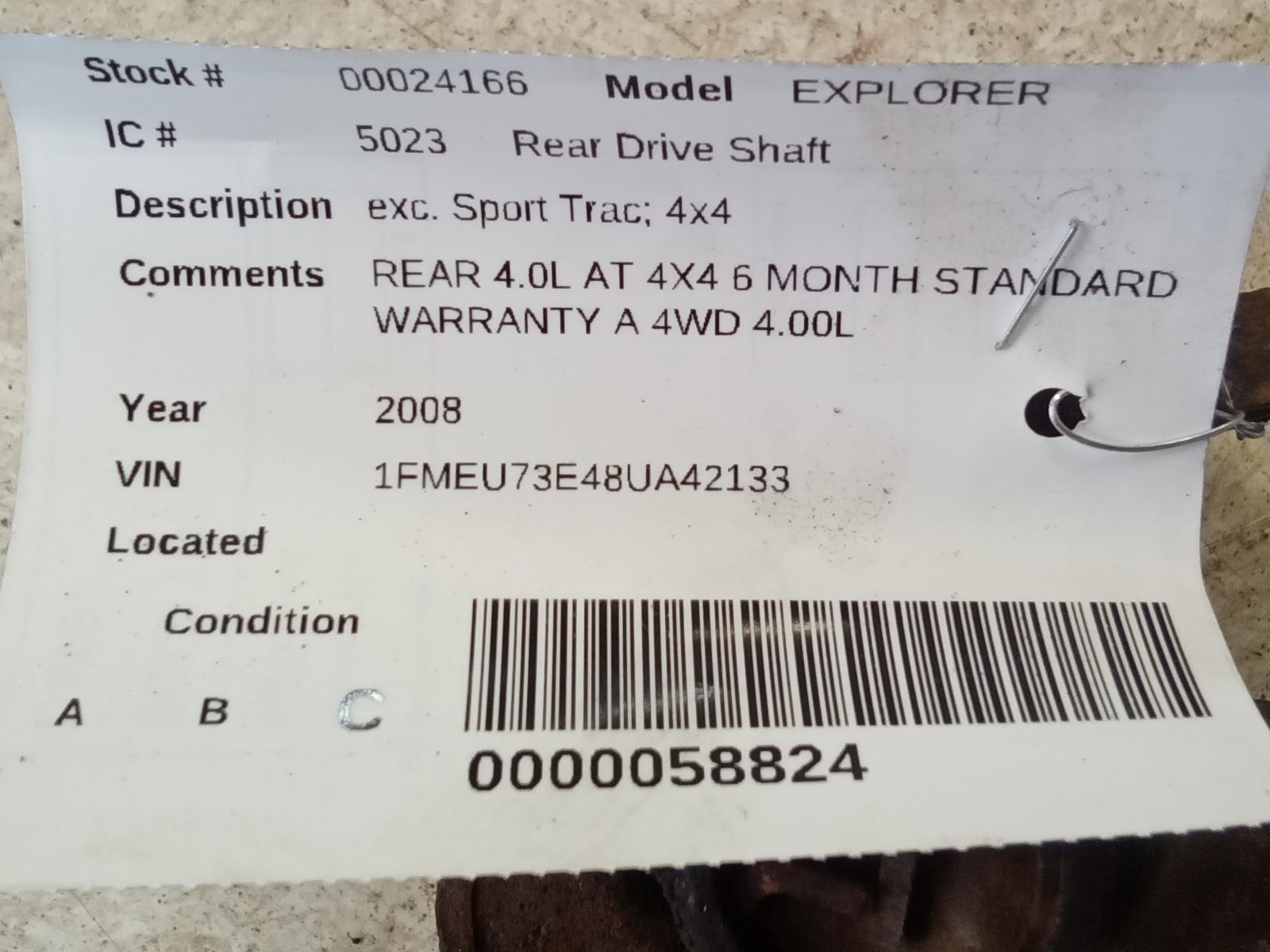 FORD EXPLORER 2002 2003 4 Dr, Exc. Sport Trac; 4×4 Part:431 Drive Shaft Rear REAR 4.0L AT 4X4 6 MONTH STANDARD WARRANTY A 4WD 4