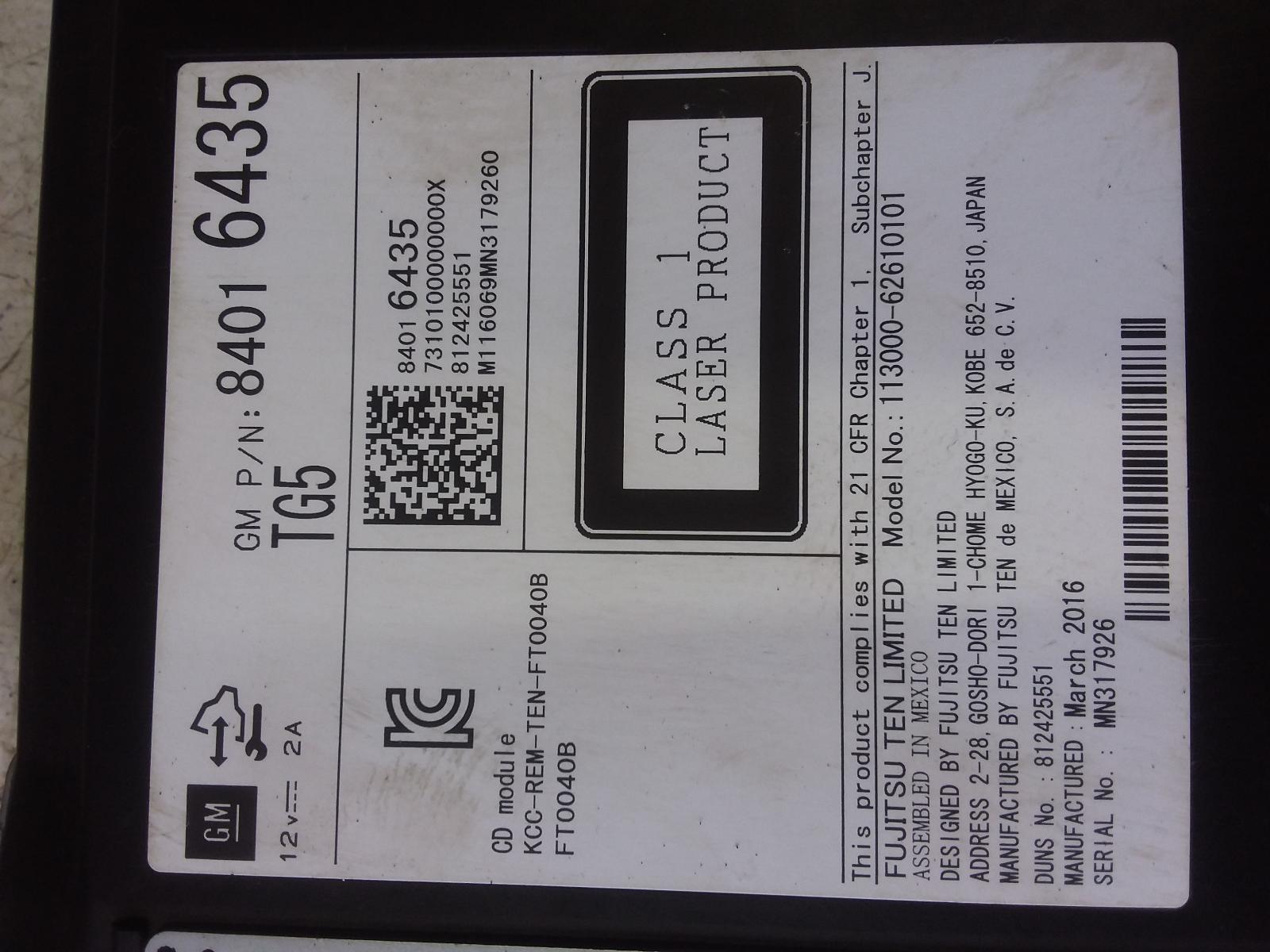 GMC SIERRA 2500 PICKUP 2016 2017 2018 2019 Audio Disc Player (opt TG5) Part:638 Radio Audio OPT KG4 5.3L AT 4X4 6 MONTH STANDARD WARRANTY
