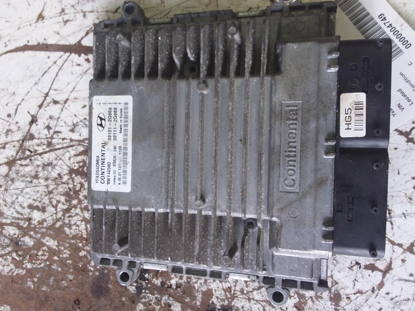 HYUNDAI SONATA 2011 Electronic Control Module; (LH under hood), 2.4L, VIN C (8th digit), AT, California emissions (PZEV), ID 39201112G666 Engine Control Module