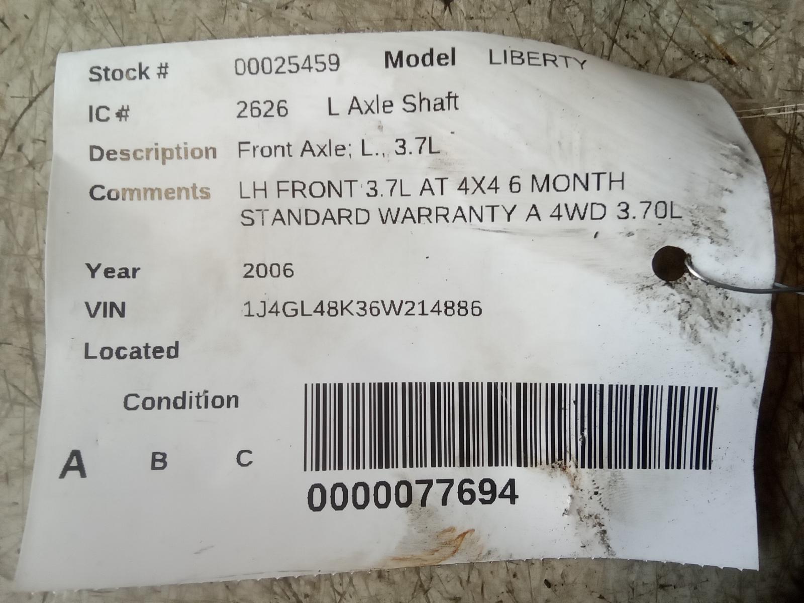 JEEP LIBERTY 07 Front Axle; L. Part:447 Axle Shaft LH FRONT 3.7L AT 4X4 6 MONTH STANDARD WARRANTY A 4