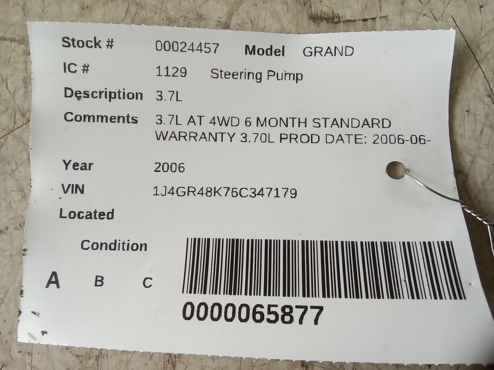 JEEP COMMANDER 2006 2007 2008 2009 4.7L Part:553 PS Pump Motor 3.7L AT 4WD 6 MONTH STANDARD WARRANTY 3.70L PROD D