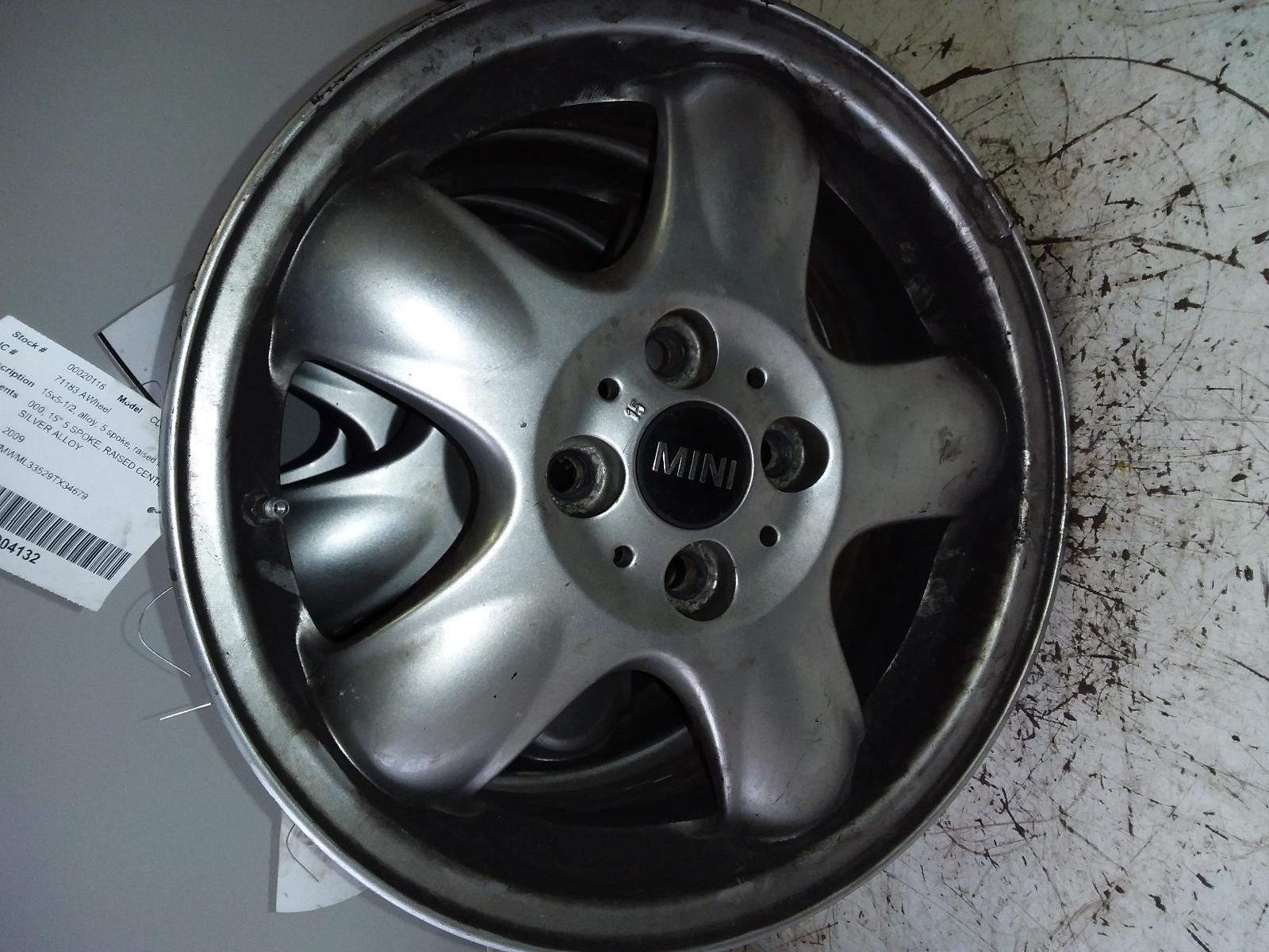 MINI CLUBMAN 2008 2009 15×5-1/2, Alloy, 5 Spoke, Raised In Center Of Spoke, Silver Part:560 Wheel 000 15 5 SPOKE RAISED CENTER SILVER ALLOY 2DR H
