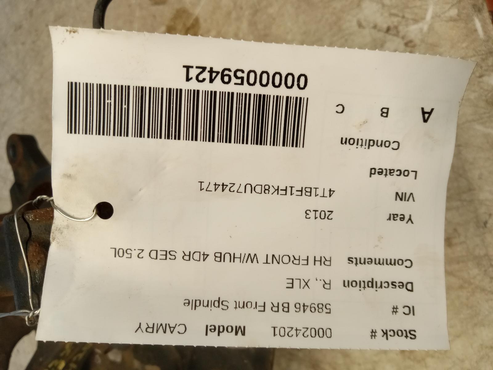 TOYOTA AVALON 2005 2006 2007 2008 2009 2010 2011 2012 R. Part:515 Spindle Knuckle Front RH FRONT W/HUB 4DR SED 2.50L